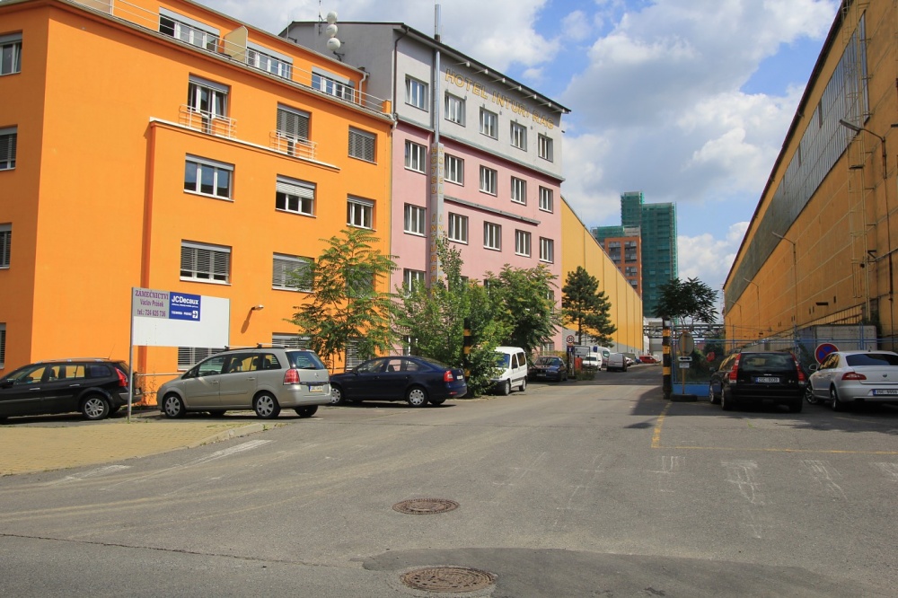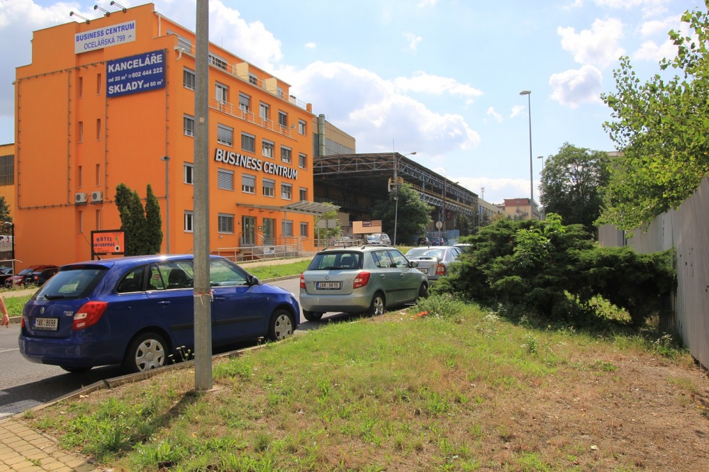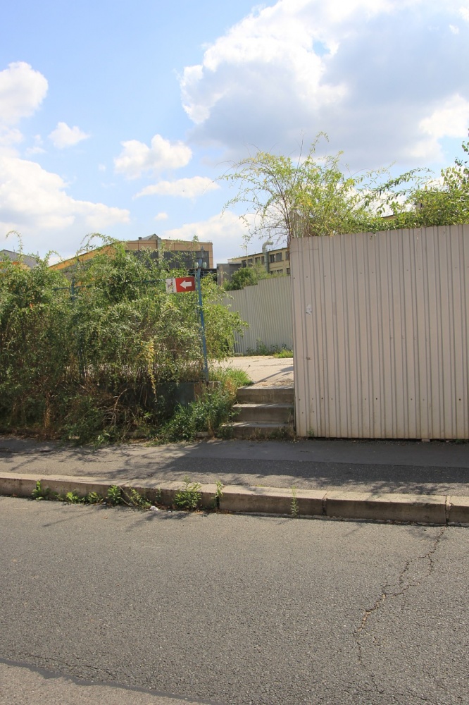 Využít můžete i zkratku. Na konci plechového ohrazení v Ocelářské ulici odbočíte vpravo do úzkého zelení porostlého průchodu označeného směrovkami BigWall. Půjdete podél šedého plotu a chodník vás dovede také do Lisabonské ulice před oranžovou budovu Business Centra. Dál již stejně, podle směrovky odbočit vlevo mezi dvě haly.